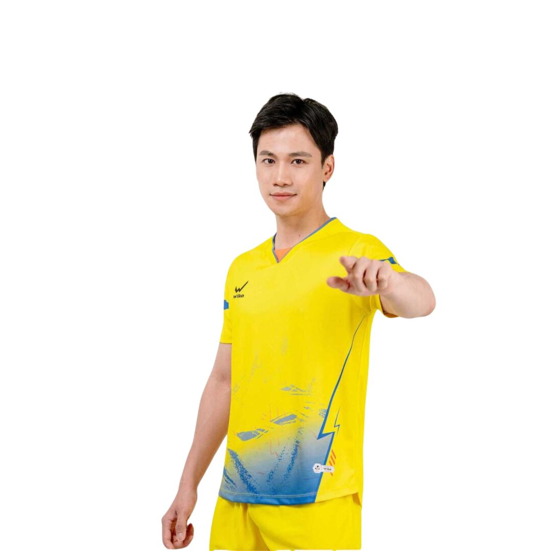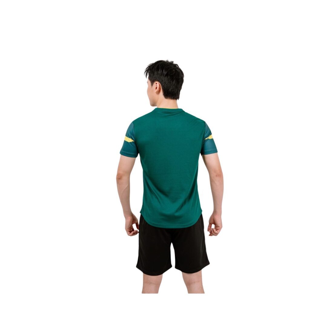 - Thiết kế: Áo tay ngắn cổ chữ V + quần đùi thể thao, tạo sự thoải mái khi thi đấu