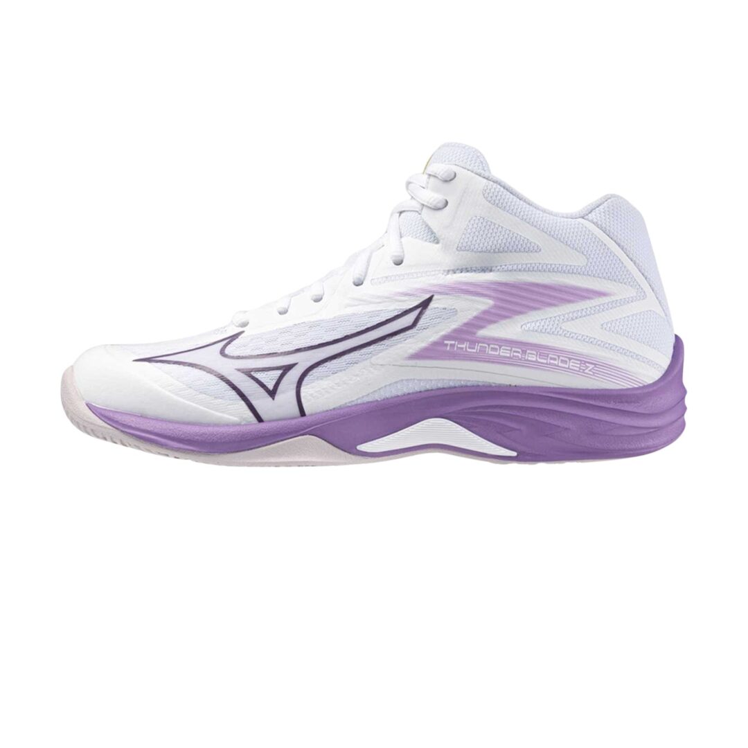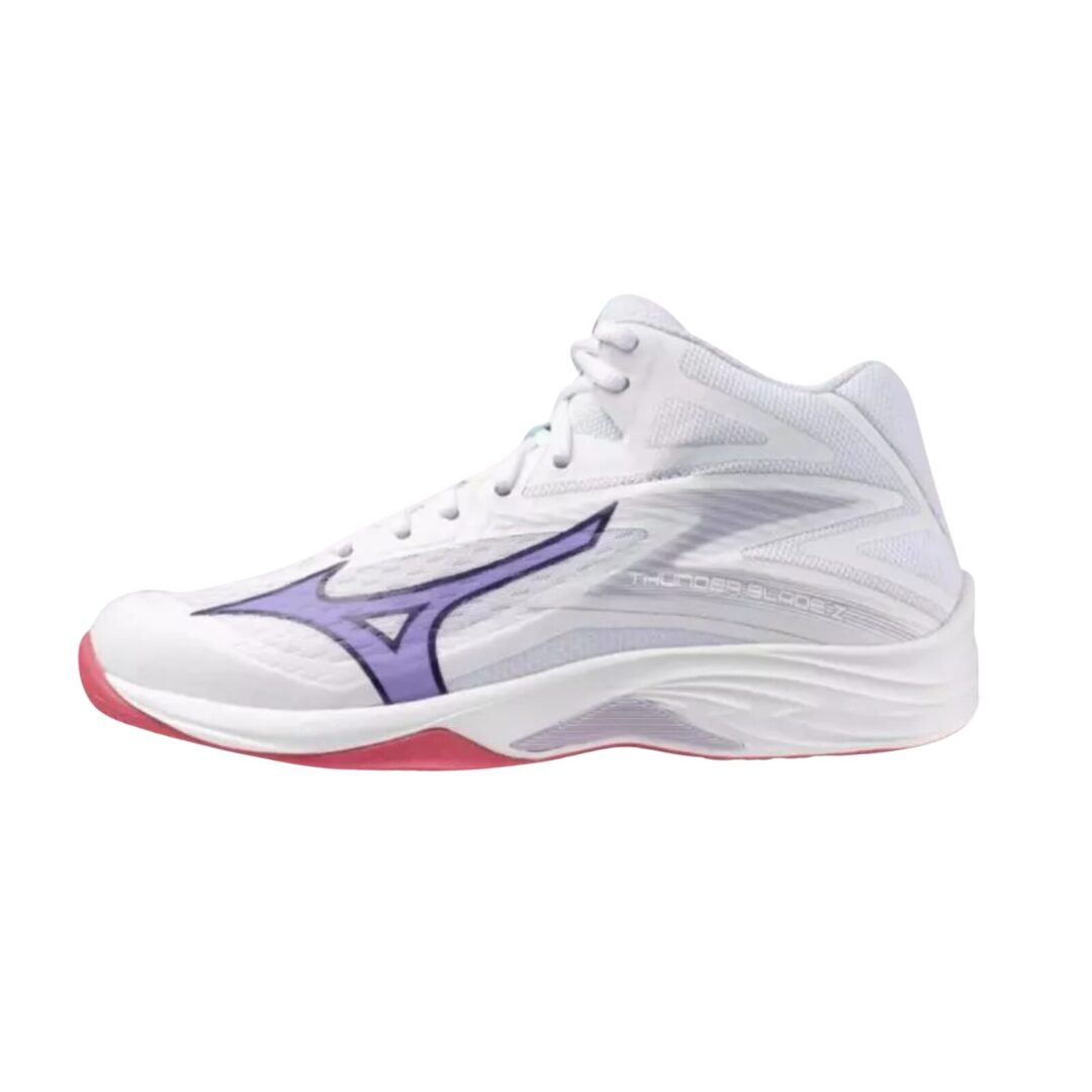 Giày bóng chuyền Mizuno Thunder Blade Z Mid phù hợp với người chơi bóng chuyền từ phong trào đến bán chuyên đang tìm kiếm một đôi giày ổn định và hỗ trợ tốt cho cổ chân.